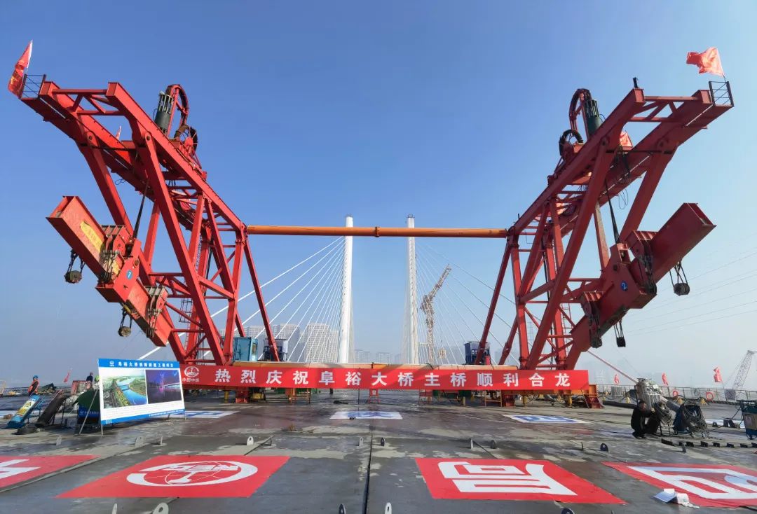 新建阜裕大橋主橋全長(zhǎng)291米,橋塔采用水滴型索塔,總高度95.6米。鋼箱梁主橋斷面為60米超寬幅鋼箱梁,總用鋼量約1萬(wàn)噸,是已經(jīng)合龍的全國(guó)最寬扁平鋼箱梁橋梁。